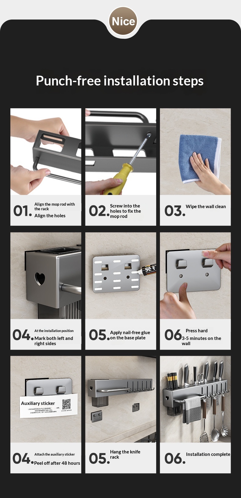 Punch-free Kitchen Shelf Home Wall-mounted